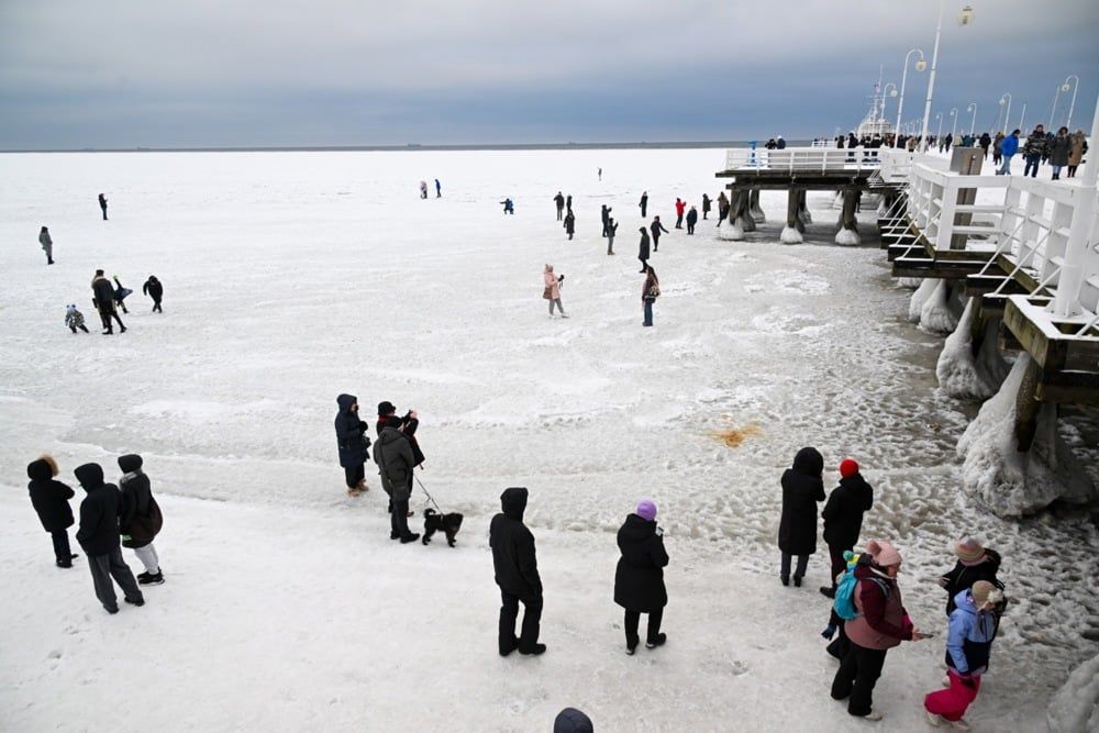 توافد الزوار على بحر البلطيق المغطى بالجليد في سوبوت