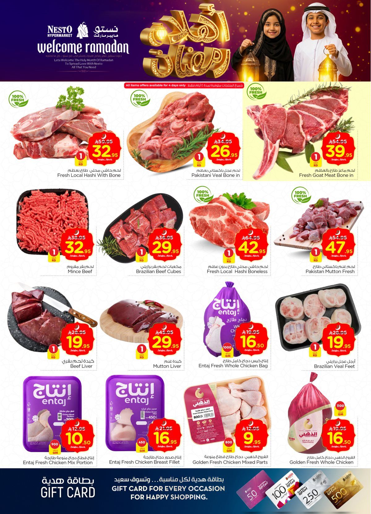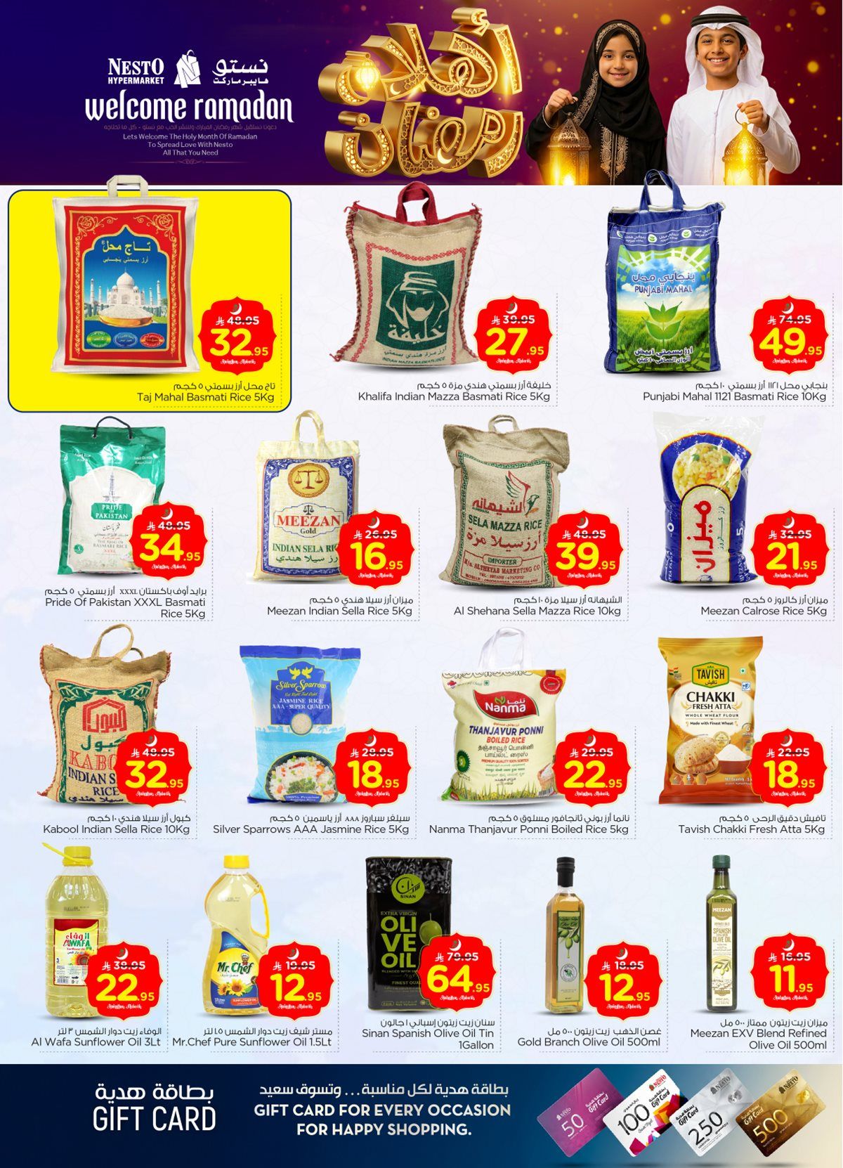 يضم عروض نستو الرباض ايضا بمناسبة شهر رمضان الكريم دقيق الحبوب والصلصة المكسيكية والتفاح السكري ولحم العجل البلدي والعدس الأصفر وحليب جوز الهند وبسكويت دايجستف وقطع دجاج مجمدة
