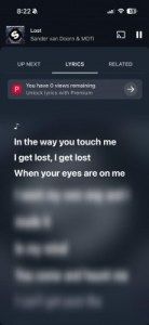 وكشفت منشورات متعددة على منتدى r/YoutubeMusic في ريديت عن ظهور تنبيه جديد داخل واجهة التطبيق يقول: لديك X مرات متبقية لعرض كلمات الأغاني، افتح الميزة مع Premium، حيث يبدأ العداد من 5 ويتناقص مع كل مرة يضغط فيها المستخدم على تبويب كلمات الأغاني.