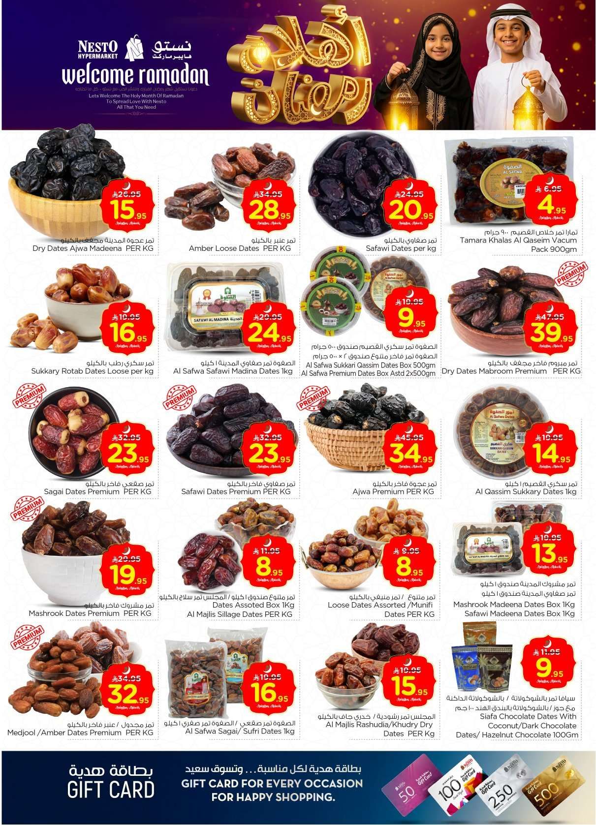 عروض نستو القصيم الأربعاء 11-2-2026 الموافق 23 شعبان 1447 تنفرد بتقديم سمك البوري والقهوة الهررية والهيل والزعفران وأرز بنجاب واللبن الرائب وقشطة المائدة والمربى والزيتون وصدور دجاج