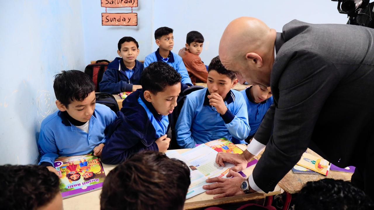 وزير التعليم يناقش الطلاب فى القراءة والكتابة