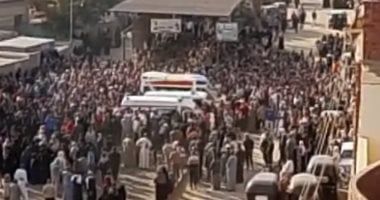 واكتست القرية بالسواد بعد وصول الجثمانين، وخرجت الجنازة من المسجد الكبير بالقرية، وسط حالة من الحزن الشديد بين أهالي القرية.