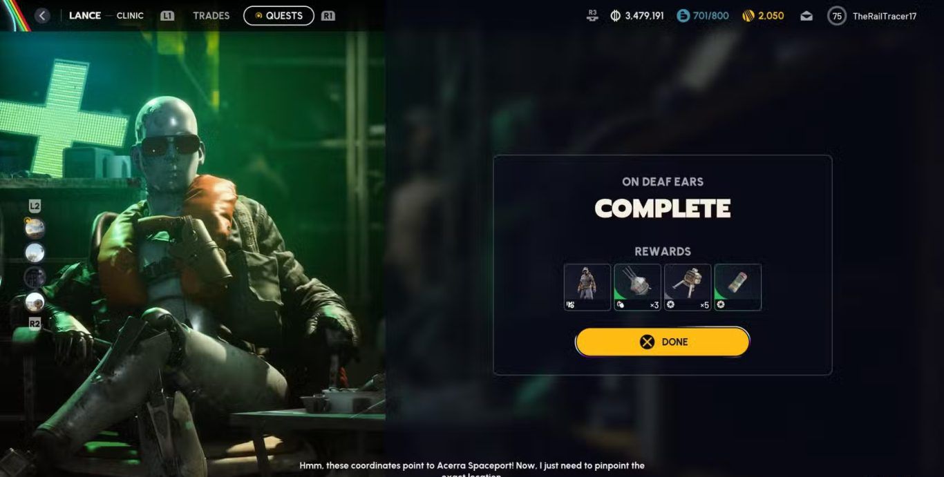 بعد إتمام جميع أهداف مهمة On Deaf Ears بنجاح داخل لعبة Arc Raiders يصبح بإمكان اللاعب العودة إلى الشخصية Lance من أجل تسليم المهمة واستلام المكافآت المخصصة لها.