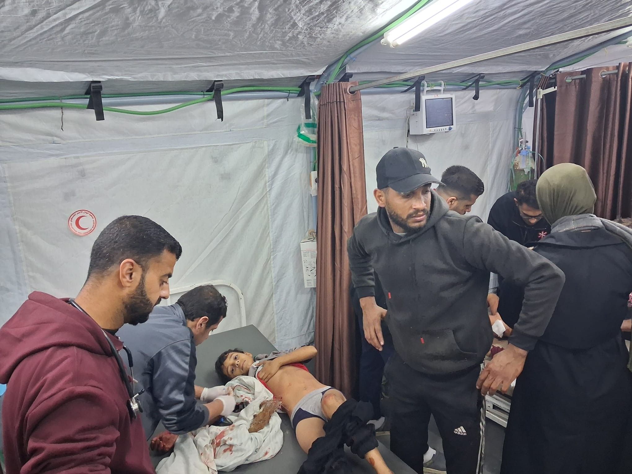 كما استُشهد ثلاثة فلسطينيين وأُصيب عشرة آخرون بجروح متفاوتة، إثر قصف جوي إسرائيلي استهدف خيمة تأوي نازحين في منطقة "المواصي" غرب مدينة خانيونس جنوب قطاع غزة.