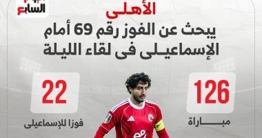 تاريخ مواجهات الأهلى ضد الإسماعيلىالاهلى يبحث عن الفوز رقم 69 أمام الاسماعيلى فى لقاء الليلة..إنفو جراف