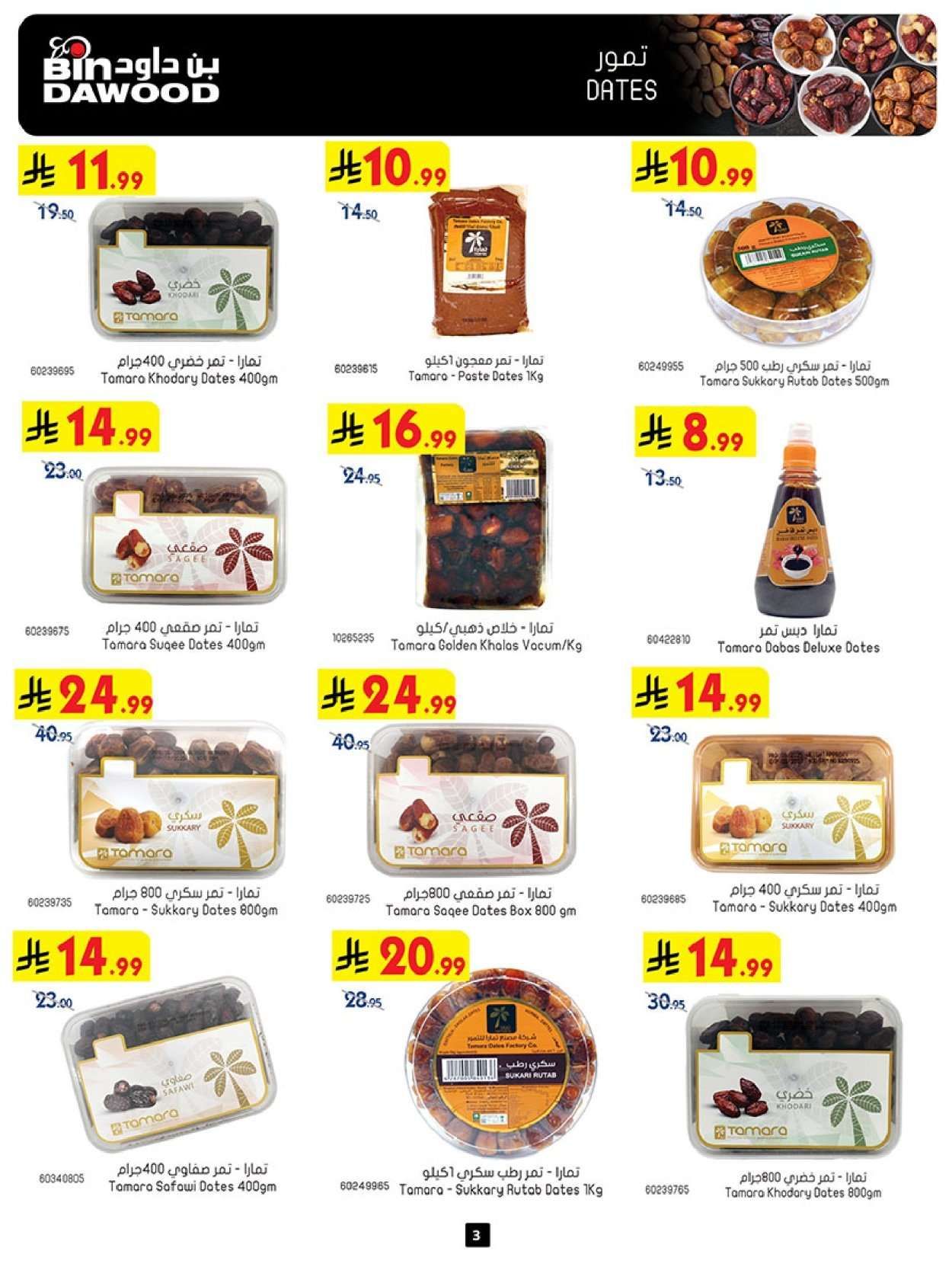 ثم ننتقل للمواد الغذائية لتشمل تمر العجوة وقطع الأرانب المجمدة وشاي أخضر سيلاني وبهارات الكبسة والبطاطس والليمون الأخضر والبرتقال المصري والدجاج المجمد وفاصوليا حمراء.