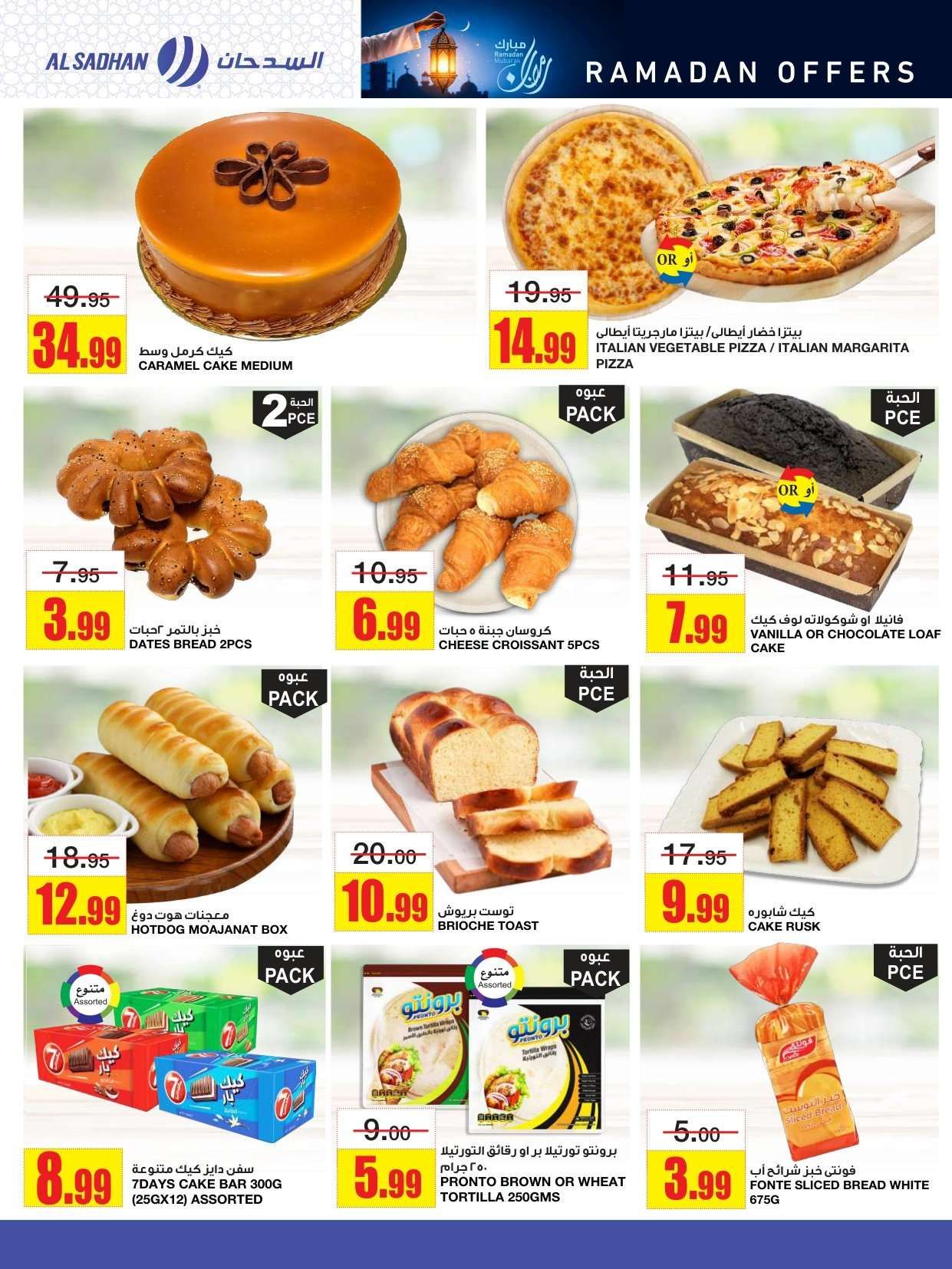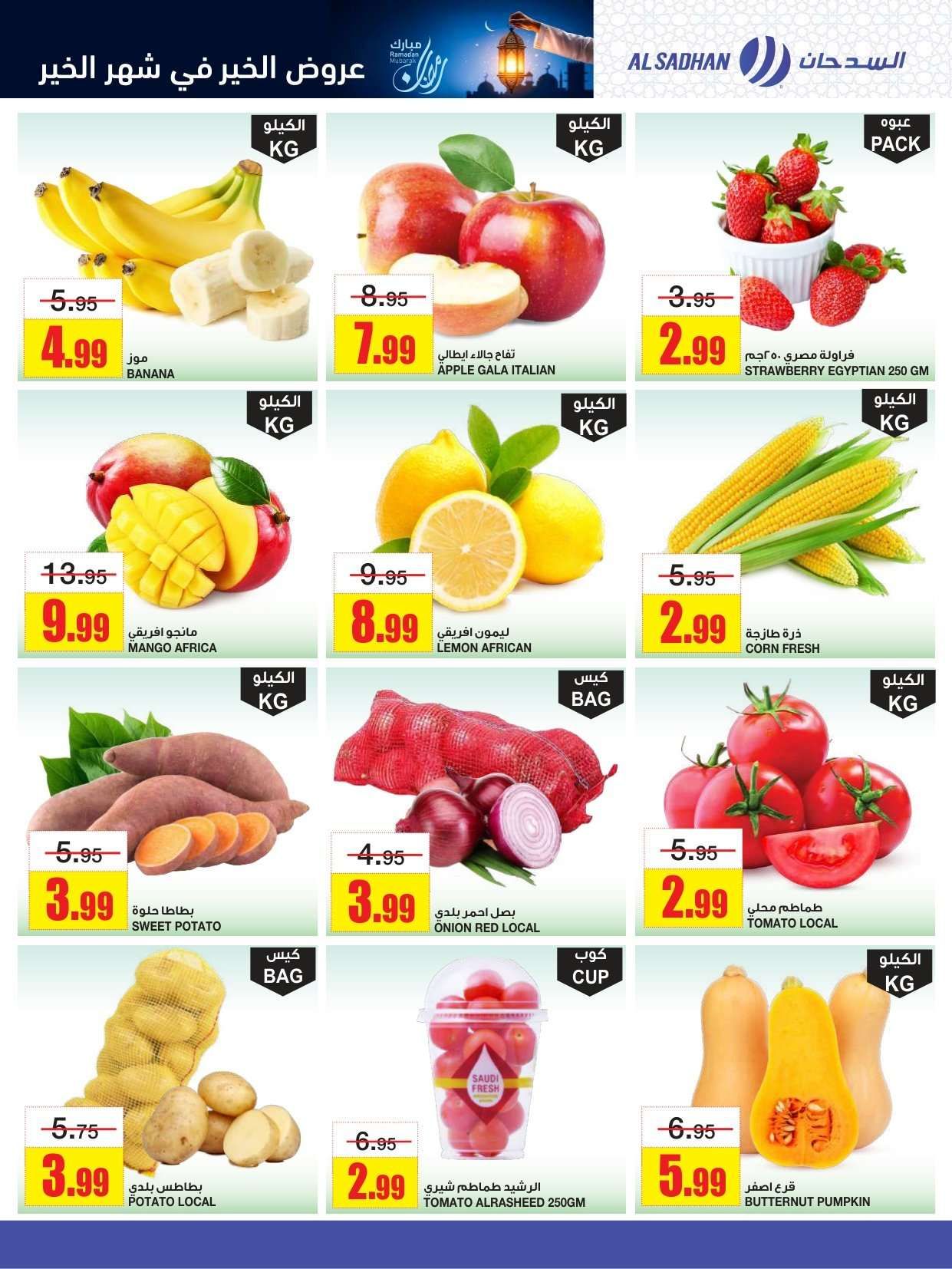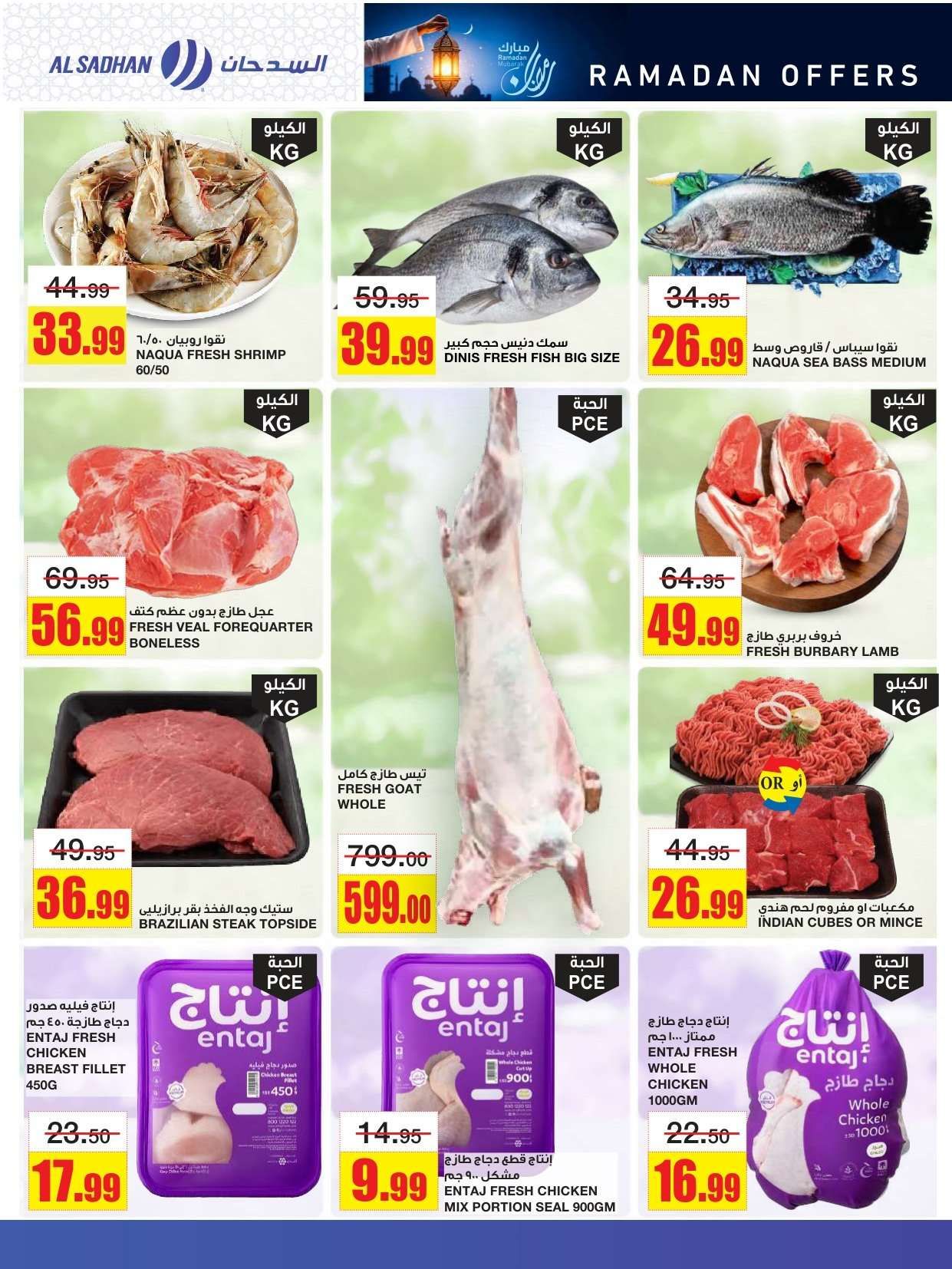 و توفير تخفيضات السدحان في شهر الخير و تشمل لحم العجل وسمك الهامور وجبنة الموزاريلا والقهوة واللبنة وشرائح الخيار والشمام والدجاج المبرد وأرز بسمتي والسكر والدقيق والعدس.