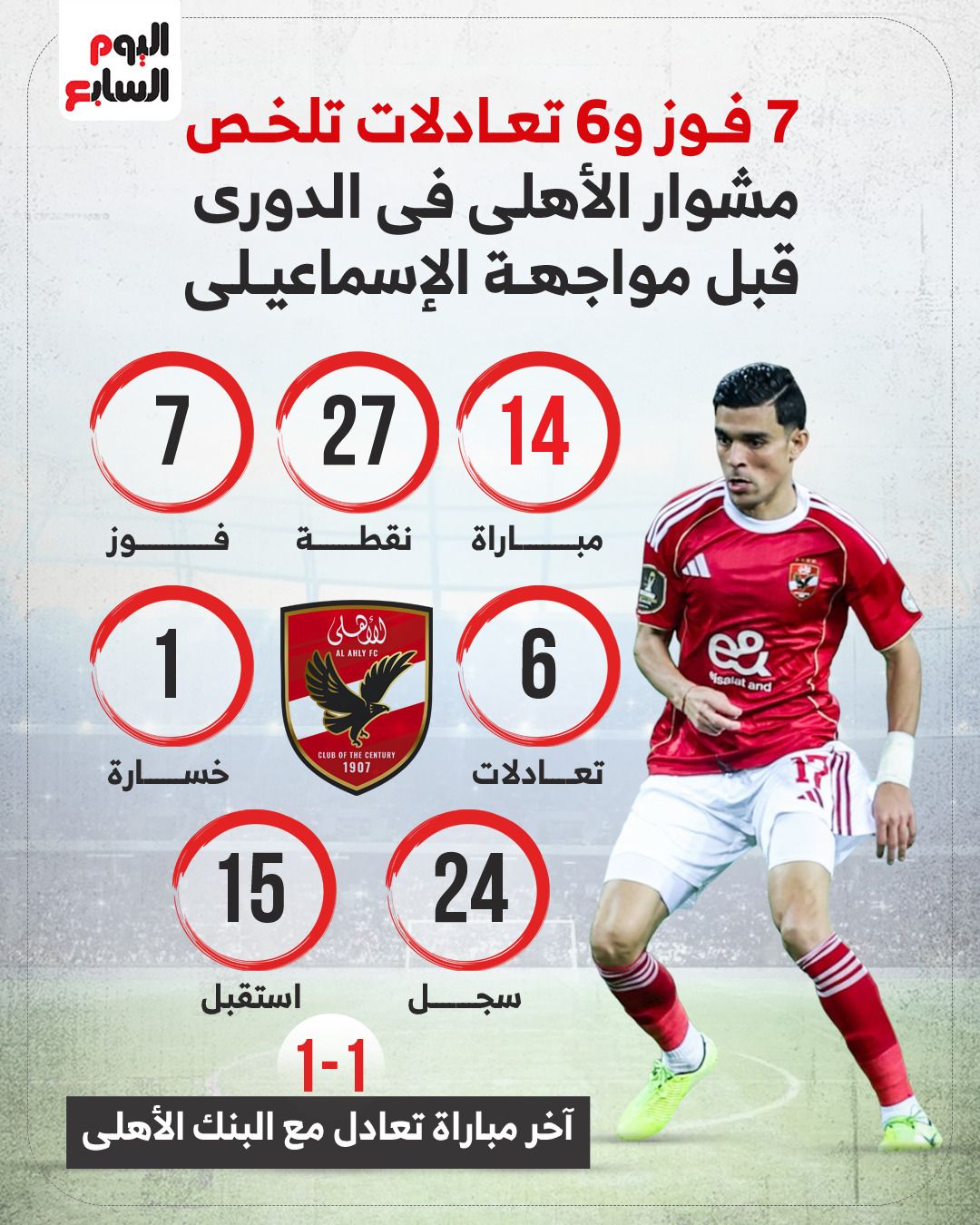 أهمية المباراة للأهلييدرك الأهلي أهمية هذه المباراة لتحقيق الثلاث نقاط، خصوصًا بعد التعادلات الأخيرة التي أبعدته عن الصدارة. ويسعى الفريق للعودة إلى سلسلة الانتصارات لتقوية موقفه في سباق المنافسة على اللقب، بينما يسعى الإسماعيلي إلى تحسين مستواه في الدوري والابتعاد عن المراكز المتأخرة.