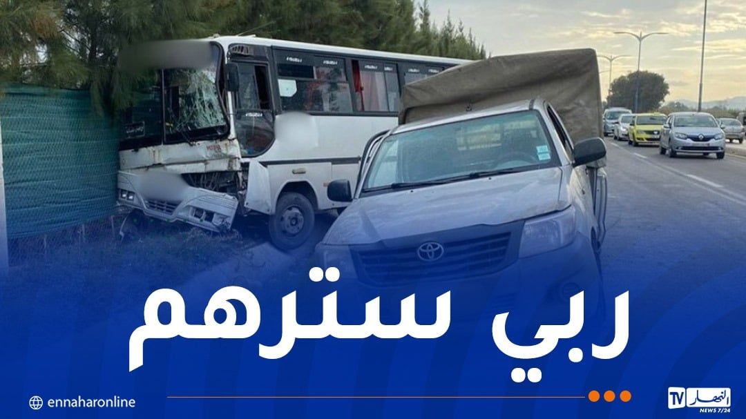 وتدخلت مصالح الحماية المدنية على الساعة 15سا02د من أجل حادث اصطدام بين حافلة صغيرة لنقل المسافرين وشاحنة. على مستوى الطريق الوطني رقم 16 أ، ببلدية عين بن بيضاء ، دائرة بوشقوف.