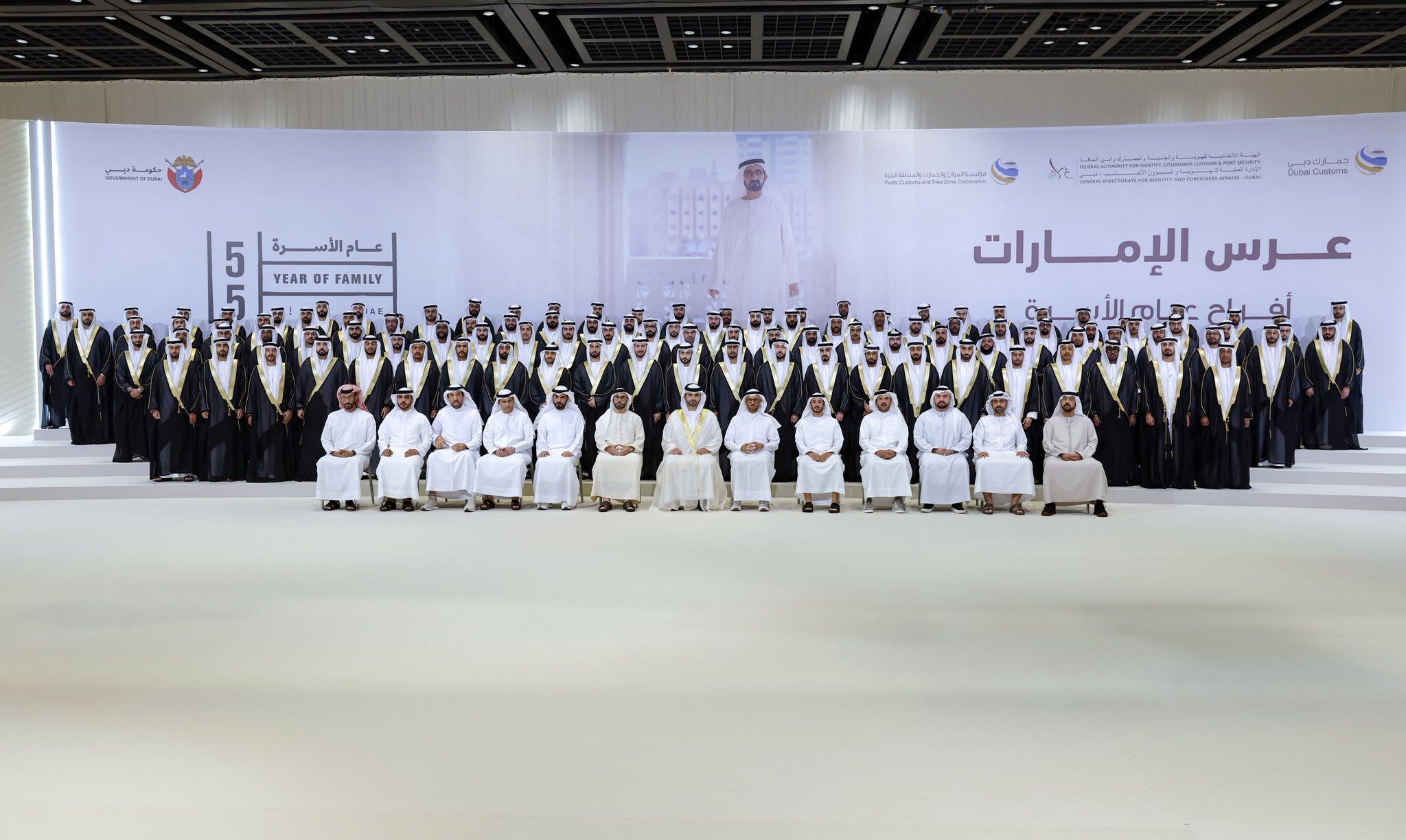 حضر سموّ الشيخ منصور بن محمد بن راشد آل مكتوم، رئيس مجلس دبي لأمن المنافذ والحدود، النسخة الثانية عشرة من العرس الجماعي الذي نظّمته الإدارة العامة للهوية وشؤون الأجانب في دبي "إقامة دبي" بالتعاون مع جمارك دبي، وذلك في مركز دبي التجاري العالمي، بمشاركة 127 عريساً، منهم 87 عريساً من موظفي إقامة دبي، و34 عريساً من موظفي جمارك دبي، و6 عرسان من موظفي مؤسسة الموانئ والجمارك والمنطقة الحرة، في مناسبة تعكس قيم التلاحم المجتمعي والدعم المؤسسي لبناء الأسرة الإماراتية.