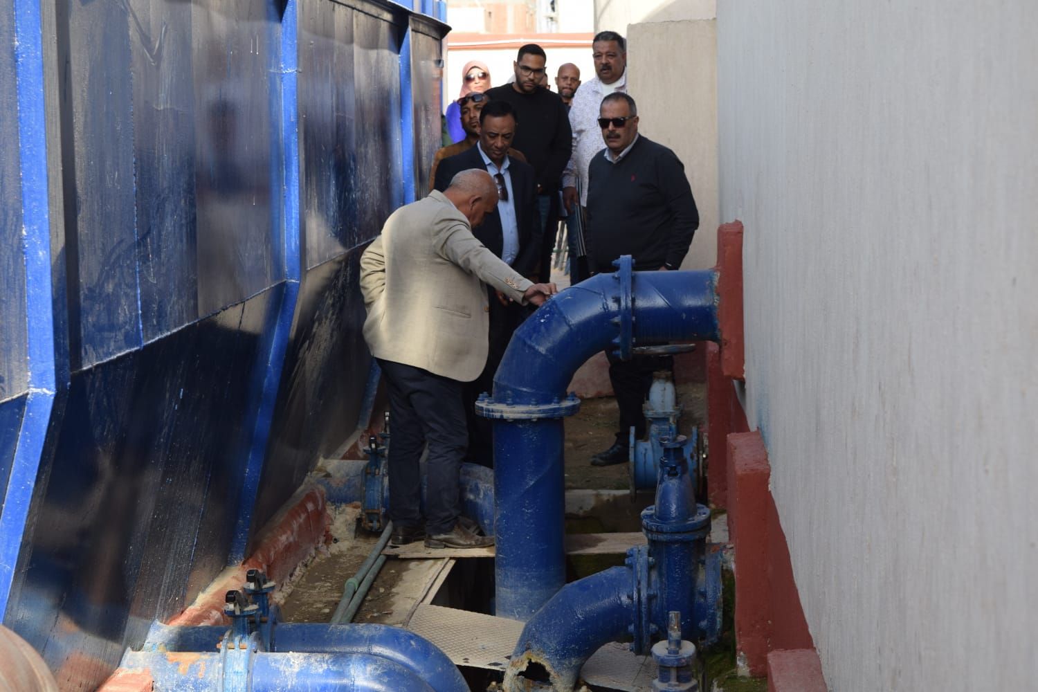 كما شملت الزيارة تفقد محطة مياه كومباكت سرابيوم بطاقة تصميمية 2400 م³/يوم لخدمة قرى أم عروج، أبو صيام، الإصلاح، أبو ديب، عزبة يوسف، والعمار. وأكد سيادته على أهمية الالتزام التام بالصيانة الدورية للمضخات والخزانات، وضبط العمليات التشغيلية بما يضمن عدم تأثر جودة المياه لأي سبب.