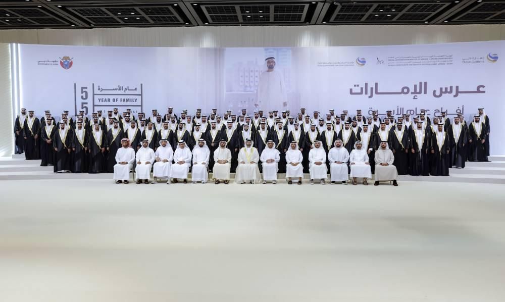 حضر سموّ الشيخ منصور بن محمد بن راشد آل مكتوم، رئيس مجلس دبي لأمن المنافذ والحدود، النسخة الثانية عشرة من العرس الجماعي الذي نظّمته الإدارة العامة للهوية وشؤون الأجانب في دبي «إقامة دبي» بالتعاون مع جمارك دبي، وذلك في مركز دبي التجاري العالمي، بمشاركة 127 عريساً، منهم 87 عريساً من موظفي إقامة دبي، و34 عريساً من موظفي جمارك دبي، و6 عرسان من موظفي مؤسسة الموانئ والجمارك والمنطقة الحرة، في مناسبة تعكس قيم التلاحم المجتمعي والدعم المؤسسي لبناء الأسرة الإماراتية.