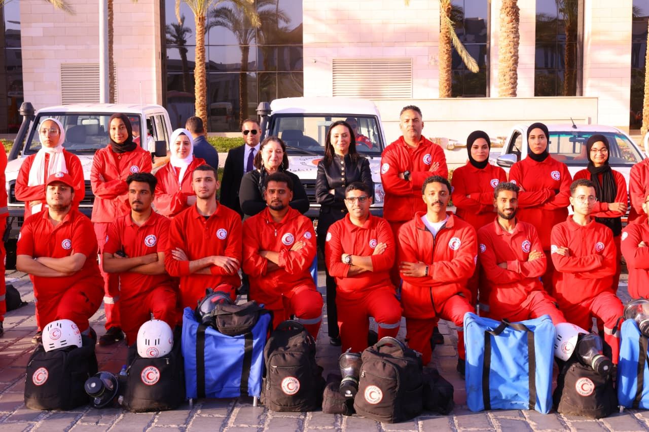 اصطفاف فرق التدخل السريع والهلال الأحمر المصري لتعزيز سرعة الاستجابة