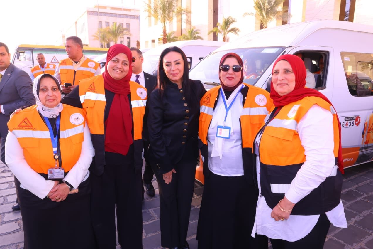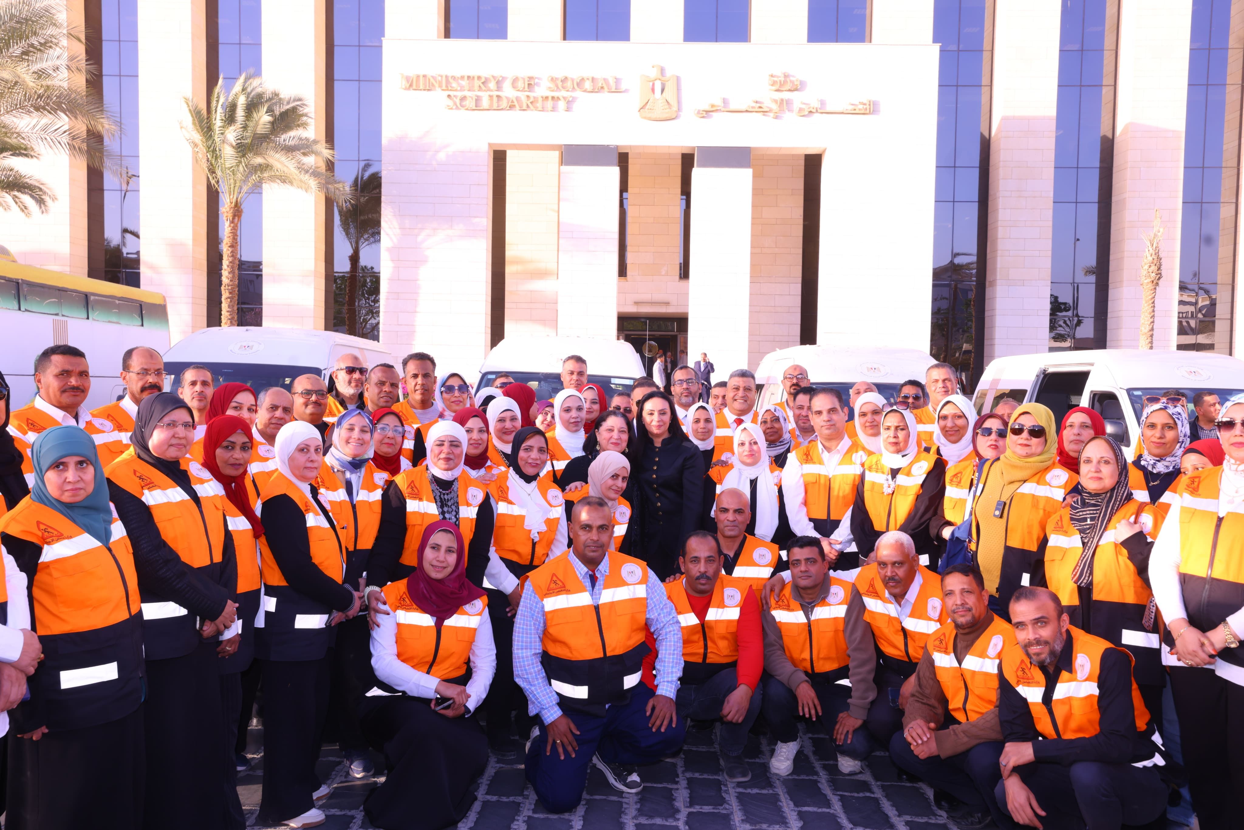 وزيرة التضامن تشهد اصطفاف فرق التدخل السريع والهلال الأحمر المصري