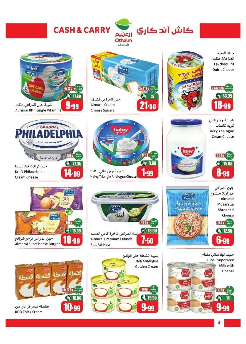بتقدم اسواق العثيم هذا الاسبوع ايضا المقبلات السريعة بالإضافة إلى تنوع كبير في الأجبان والألبان والقشطة ومستلزمات الخبز والحلويات من دقيق وخليط كيك وشوفان في كاش اند كاري من العثيم