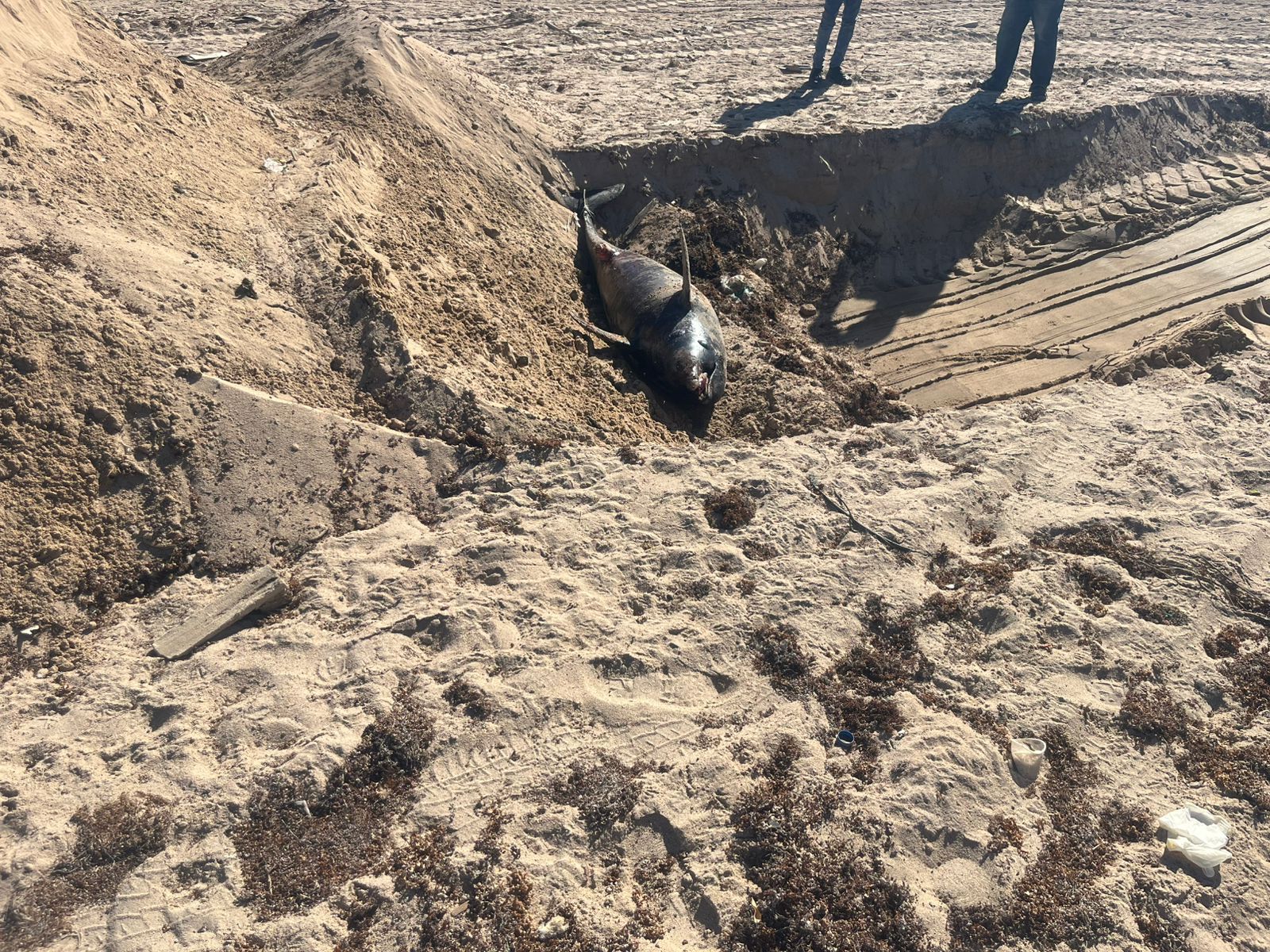 وزيرة : دفن الدولفين النافق فى رأس غارب بشكل آمن.. صور