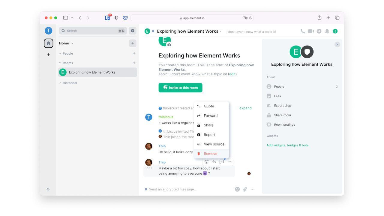 يمكنك تثبيت عميل للوصول إلى الخوادم العامة، أو استضافة خادم خاص للتحكم الكامل في بياناتك. الخيار الأكثر شيوعًا للاستضافة يسمى Synapse، لكن هناك بدائل مثل Dendrite وConduit، كما أن Matrix أيضًا مفتوح المصدر بالكامل، مما يجعله خيارًا مثاليًا للخصوصية والاستقلالية.