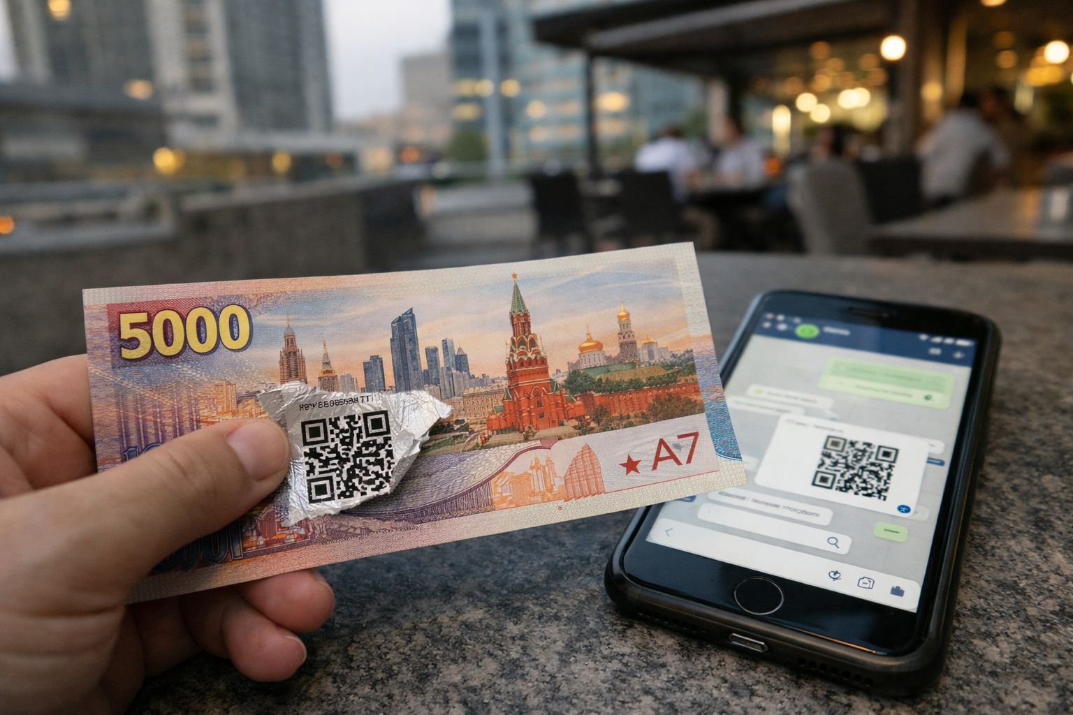 - يمكن لحامل هذه الأوراق خارج روسيا كشط طبقة رقيقة فضية لكشف رمز الاستجابة السريعة "كيو آر كود"، ثم يُرسل هذا الرمز إلى "بوت" على "تيليجرام"، ليصل مندوب الشركة إلى الموقع المحدد ومعه النقود.