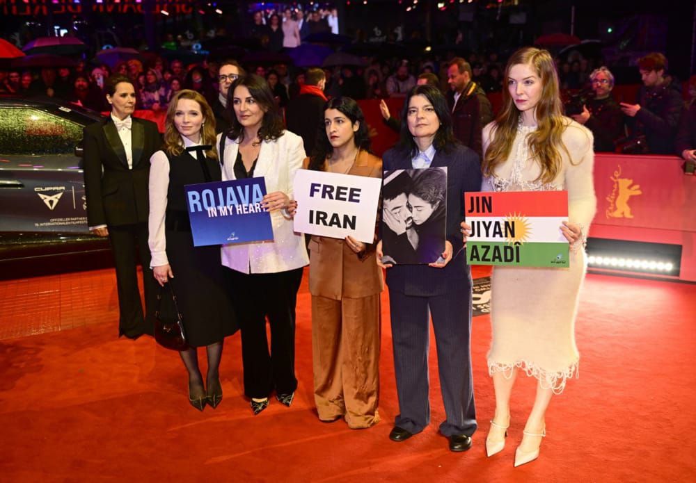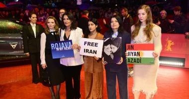 رفع لافتات إيران حرة على السجادة الحمراء لمهرجان برلين السينمائي