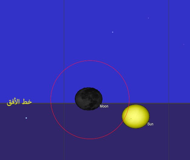 وقال، مدير مركز الفلك الدولي، المهندس محمد شوكت عودة: "سيكون القمر عند غروب الشمس يوم الثلاثاء ملاصقًا للشمس في جميع مناطق الجزيرة العربية. فعلى سبيل المثال، سيبلغ البعد الزاوي بين الشمس والقمر في مدينة الرياض وقت الغروب درجةً واحدةً فقط. وبما أن هذه المسافة تُقاس بين مركزي قرصي الشمس والقمر، فإن ذلك يعني أن الهلال -على فرض وجوده- سيقع على بُعد نصف درجة تقريبًا من حافة قرص الشمس.