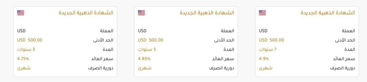ويبلغ سعر العائد على الشهادة البلاتينية بالجنيه المصرى ذات العائد الشهري لمدة 3 سنوات 16%