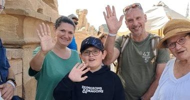 سياح من فرنسا يقدمون التهنئة من الكرنك للمصريين بقدوم شهر رمضان المبارك
