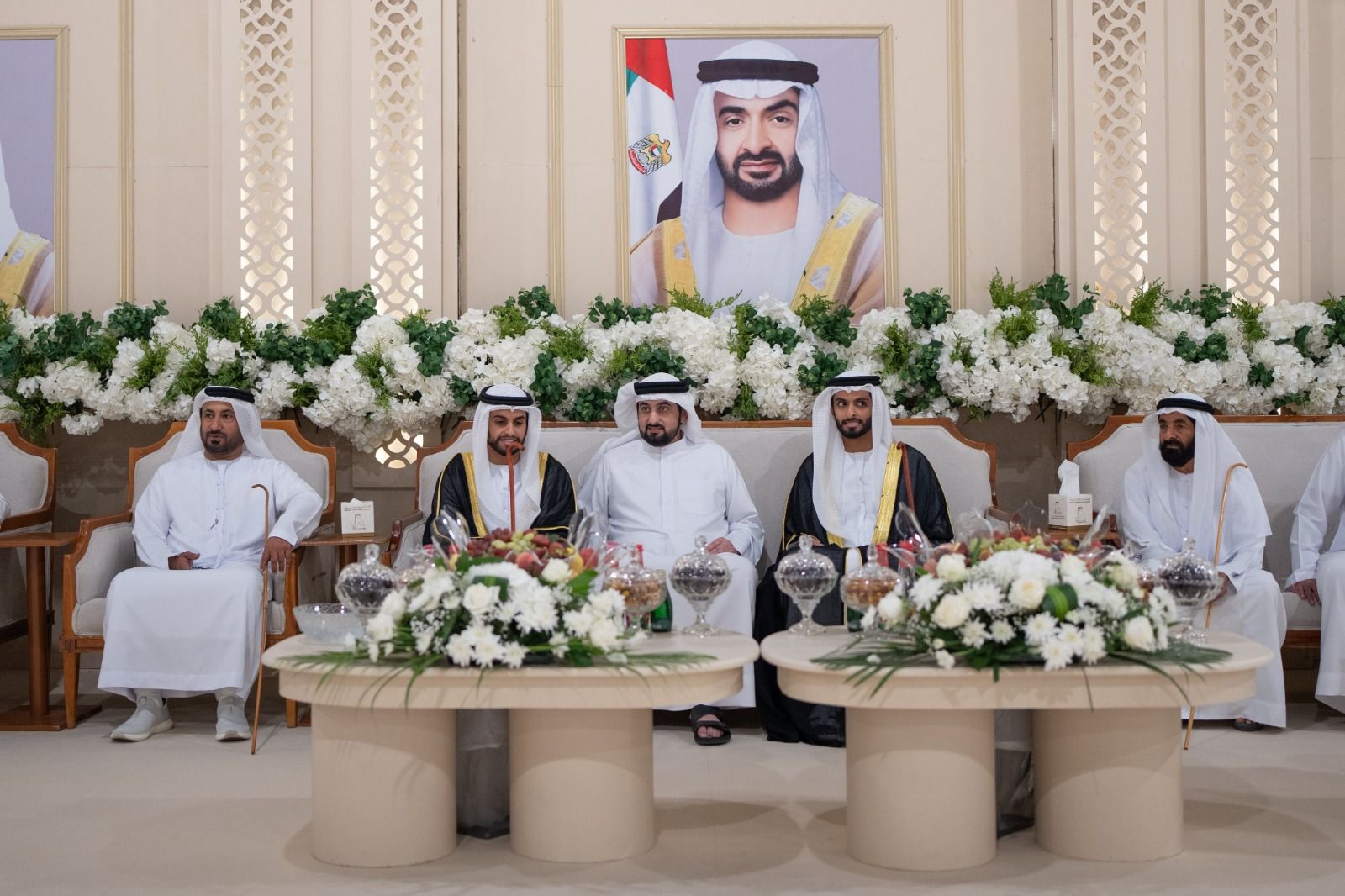 حضر سموّ الشيخ أحمد بن محمد بن راشد آل مكتوم، النائب الثاني لحاكم دبي، اليوم (السبت) حفل الاستقبال الذي أقامه بطي محمد راشد الطروق الغفلي، بمناسبة زفاف نجله عدي، على كريمة راشد عبدالله عمران الشامسي، ونجله علي، على كريمة حمد راشد الضبعة الكتبي، وذلك في قاعة الرمال بدبي.
