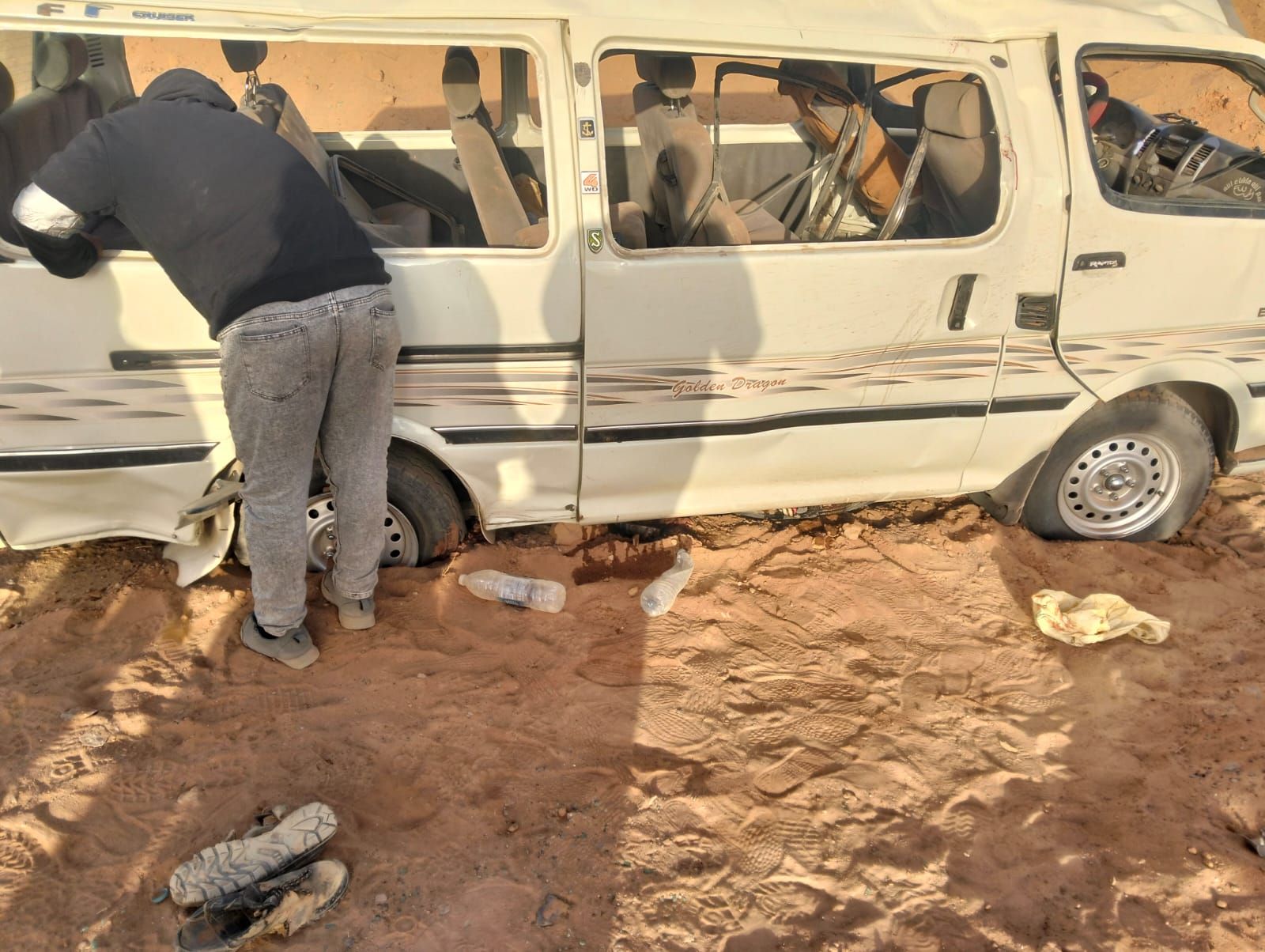 السبت، 14 فبراير 2026 05:27 ملقى شخص مصرعه وأصيب 11 آخرون، اليوم السبت، فى حادث انقلاب سيارة ميكروباص بالطريق الصحراوى الغربى قبل الكمين.