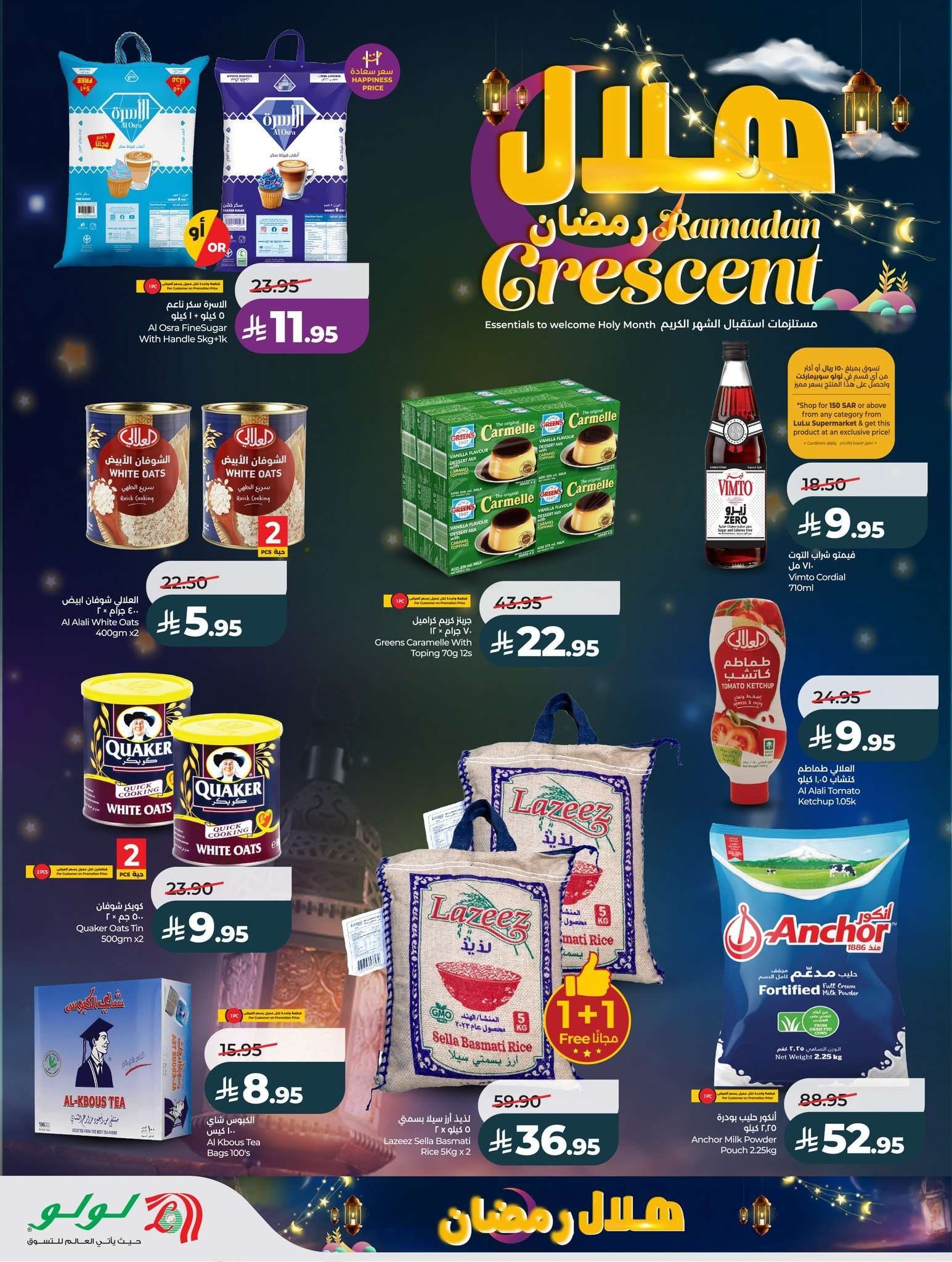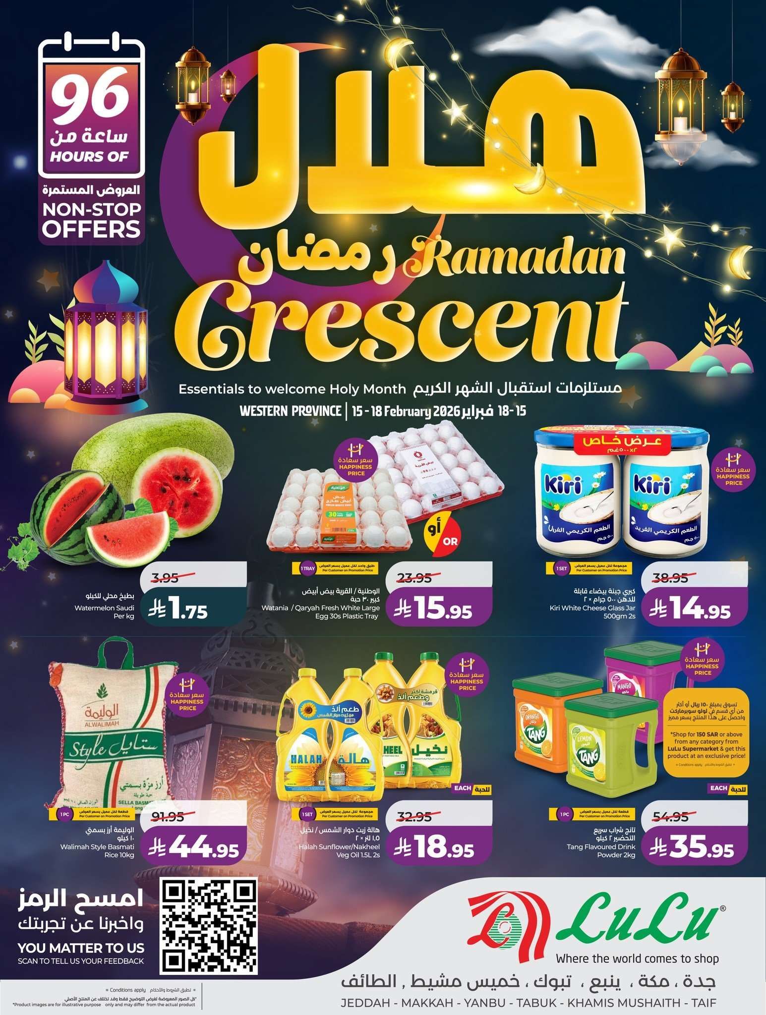 نقدم لكم عروض لولو جدة الاحد 15-2-2026 – 27 شعبان 1447هـ و تحتوي علي أرز بسمتي وسكر وشوفان وحليب مجفف وزيوت نباتية وعصائر فيمتو وتانج باسعار مميزة