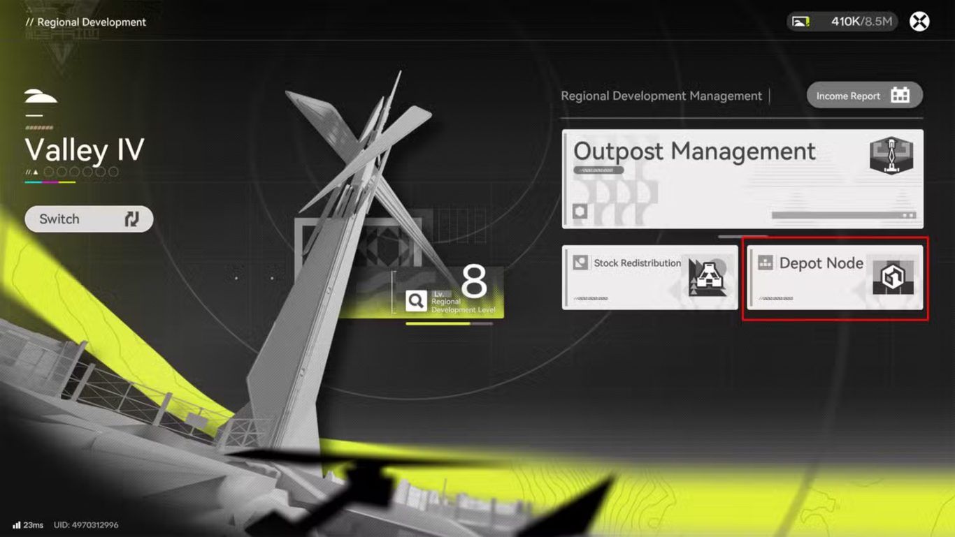 لتنفيذ مهام Depot Node Deliveries داخل لعبة Arknights Endfield يجب على اللاعب أولا الدخول إلى واجهة Regional Development والتي تمثل مركز التحكم الرئيسي في الأنظمة الإدارية واللوجستية.