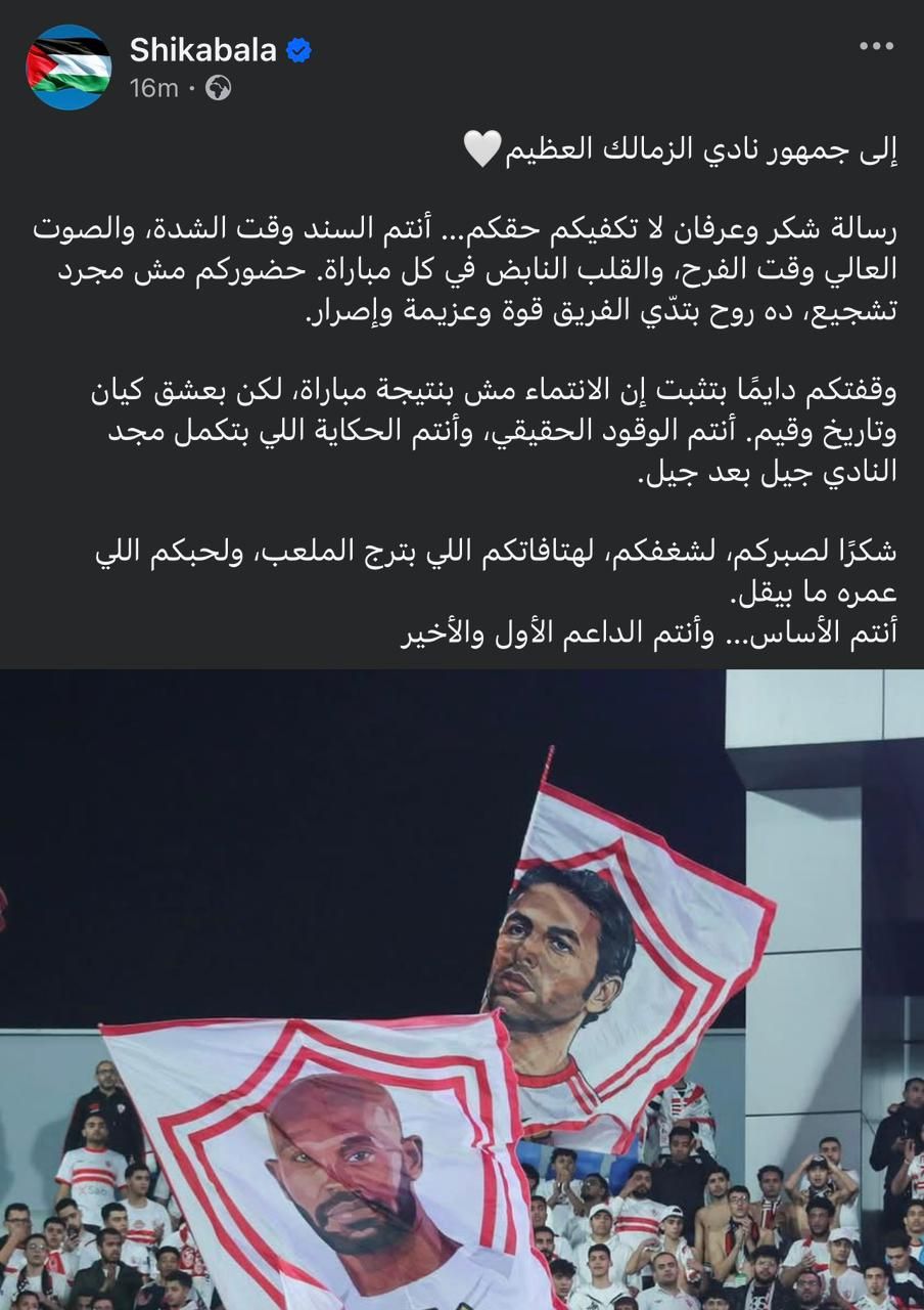 شكرًا لصبركم، لشغفكم، لهتافاتكم اللي بترج الملعب، ولحبكم اللي عمره ما بيقل.