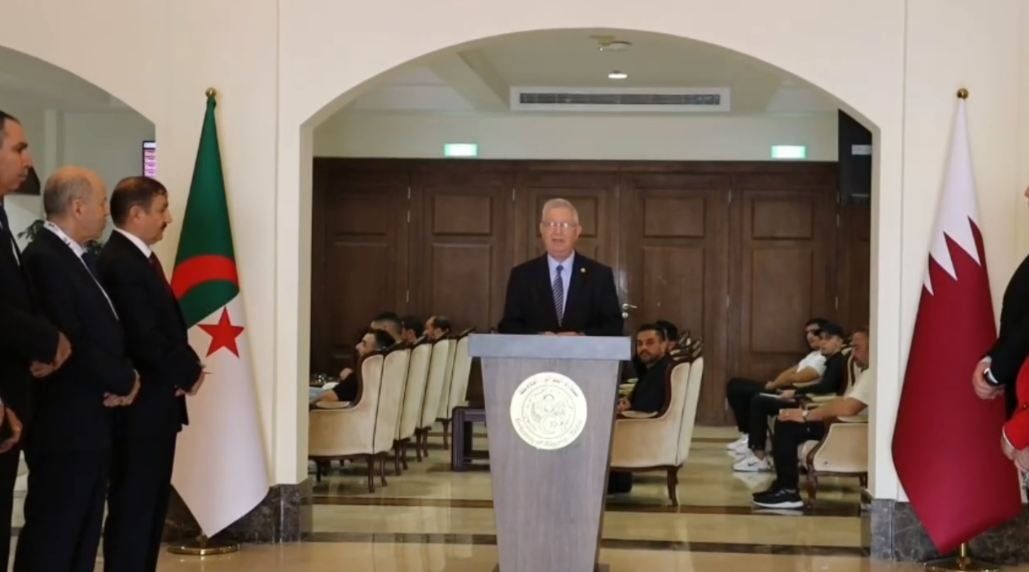 وكان في استقباله، بمقر السفارة، صالح عطية، سفير الجمهورية الجزائرية الديمقراطية الشعبية لدى دولة قطر وأعضاء السفارة والموظفين.
