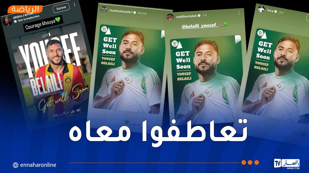 وأبدى قائد “الخُضر” رياض محرز، وحارس مرمى لوكا زيدان، ونبيل بن طالب، دعمهم الكامل لبلايلي، الذي سيغيب عن كأس أمم إفريقيا المقبلة، بسبب تعرضه لتمزق في الأربطة المتقاطعة للركبة.