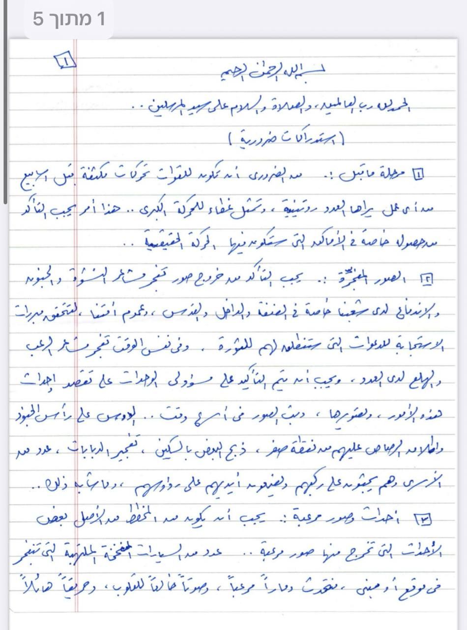 في مستهل الوثيقة، كتب السنوار توجيها يوصي فيه بضرورة تنسيق الاقتحامات من محاور متعددة، مع إدارة التوقيت بدقة واستدعاء القوات تباعًا وفق خطة محكمة.