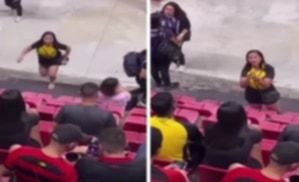 وثق مقطع لحظة ضبط فتاة برازيلية لصديقها رفقة فتاة أخرى لمشاهدة مباراة في الدوري المحلي.