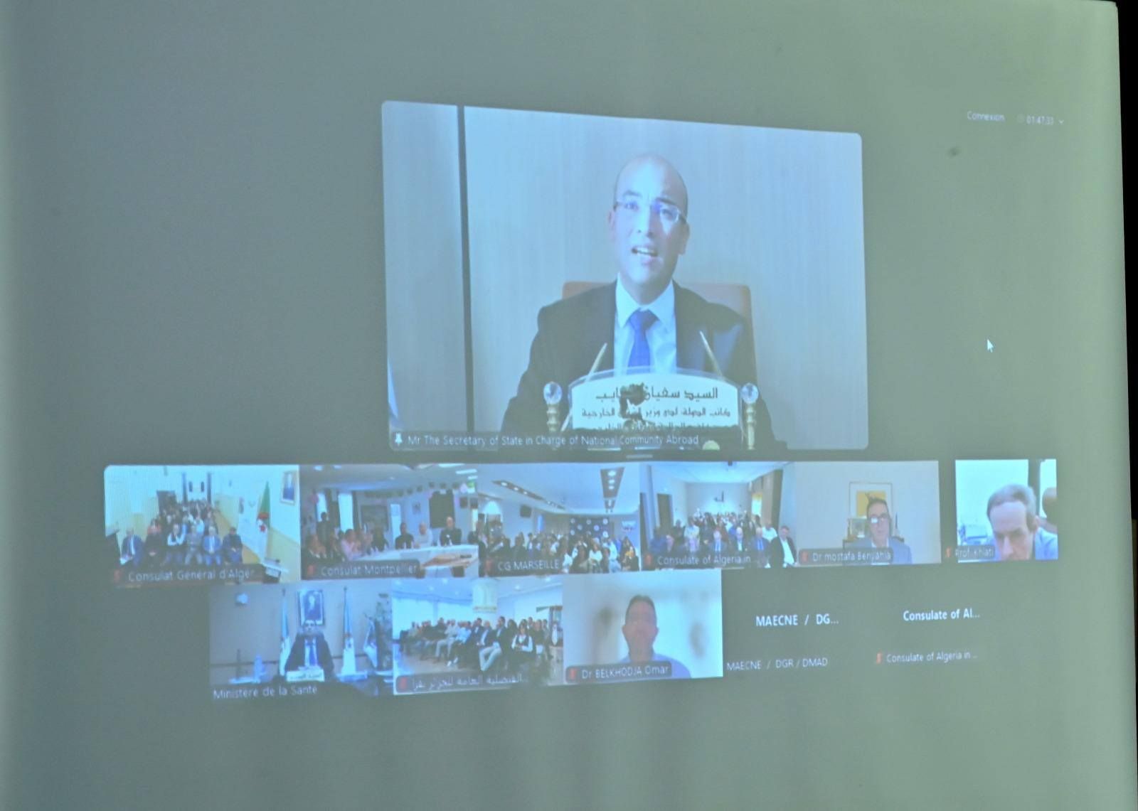أجرى كاتب الدولة لدى وزير الشؤون الخارجية، المكلف بالجالية الوطنية بالخارج، سفيان شايب، رفقة وزير الصحة، محمد صديق آيت مسعودان، لقاءاً افتراضيا.