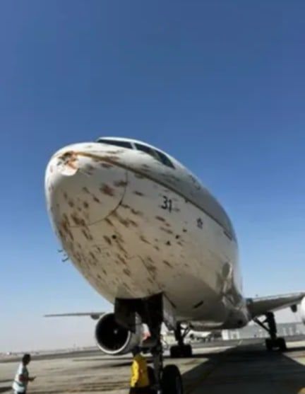 اصطدام مفاجئ في السماء.. طائرة سعودية تواجه سرب طيور أثناء الهبوط..صور تكشف حجم الضرر