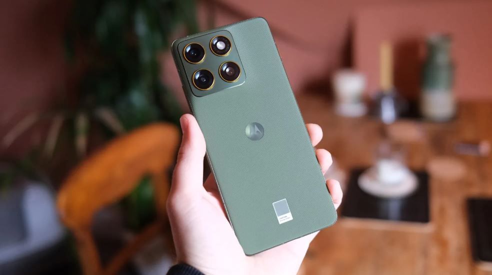 كما يحتوي الهاتف على شريط Pantone صغير في الأسفل يعكس شراكة مع موتورولا لتقديم ألوان مبتكرة مثل اللون الأخضر الهادئ.