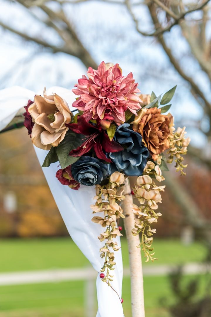 تفاصيل في ديكور طاولة المدعويين إلى حفل الزفاف بلون الخريف (الصورة من unsplash) - تركيبات الزهور المعلقة: تُضيف تركيبات الزهور المُعلّقة لمسةً رائعةً على حفل الزفاف الخريفي. هذه الترتيبات ليست جميلة فحسب؛ بل هي تُشكّل خلفياتٍ رائعة للصور.