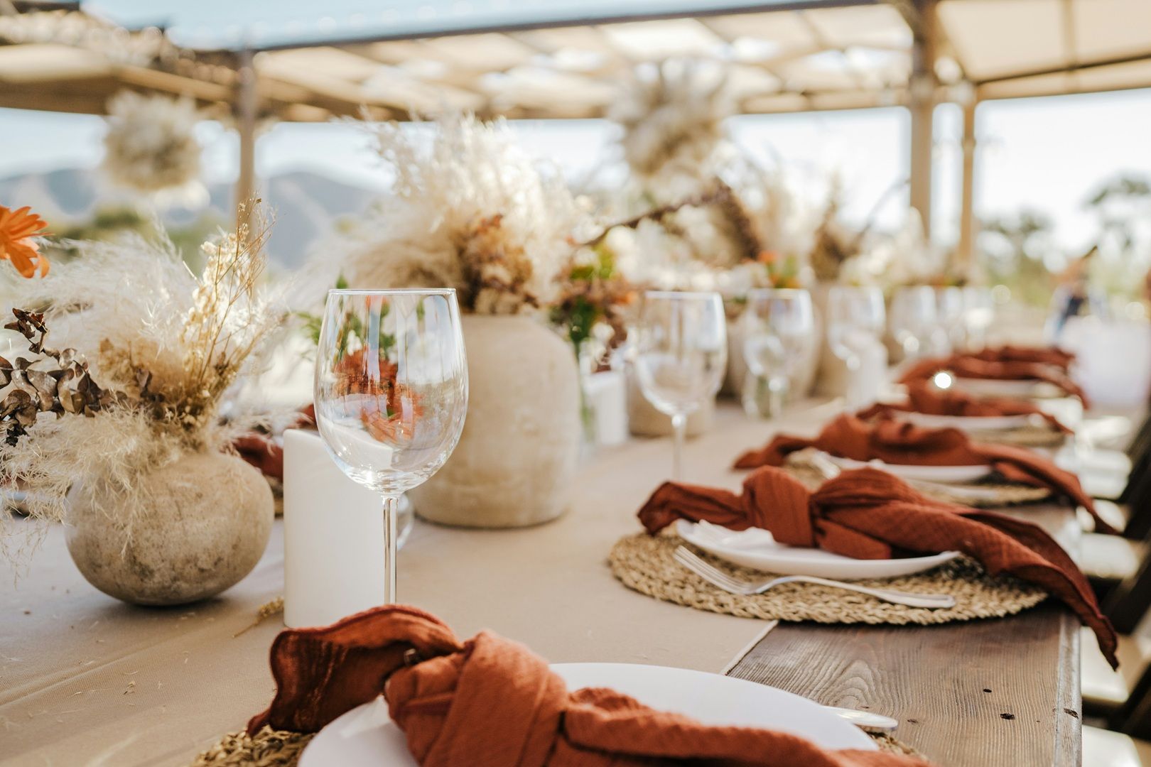 نموذج من تنسيق طاولات الحضور (الصورة من pexels) - تنسيق الطاولات: في إطار تنسيق طاولات الحضور، من الممكن الاستعانة ببعض الألوان الخريفية في أدوات المائدة من أطباق ومناديل، كاللون البرتقالي والوردي.