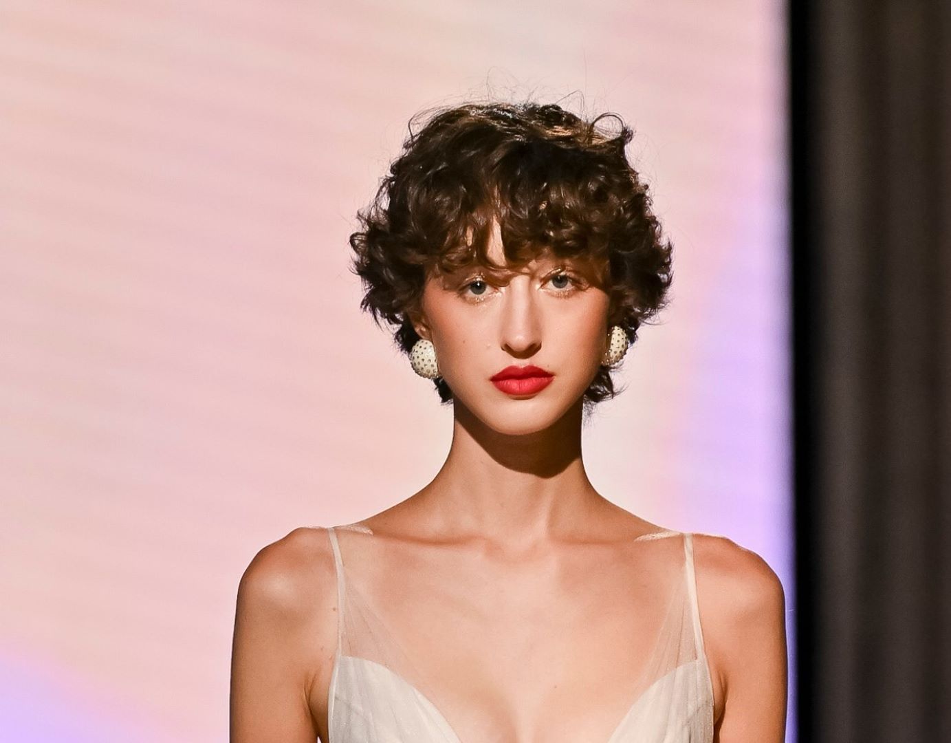 في عودة لأسلوب السبعينيات بلمسة عصرية، تألقت بعض العارضات خلال أسبوع العرائس في نيويورك بإطلالات ساحرة بمكياج عيون ذهبي غليتر يعكس الإضاءة ويمنح نظرات آسرة، مع أحمر شفاه أحمر مخملي يضفي جرأة راقية. ترافق هذا اللوك مع تسريحة الشعر القصير الكيرلي الطبيعي التي تضيف حيوية وأناقة لافتة، لتكون مثالية للعروس الجريئة الباحثة عن إطلالة مميزة.