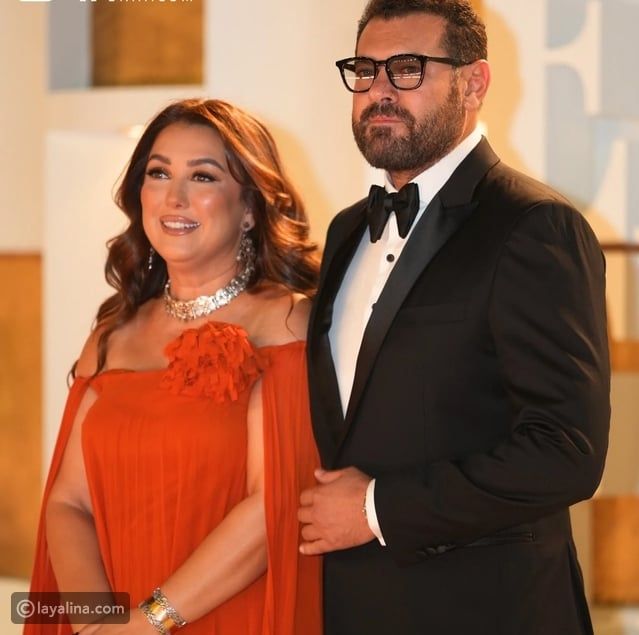 تألّق الفنان خالد سليم على السجادة الحمراء بإطلالة أنيقة اعتمد فيها بدلة سوداء كلاسيكية نسّقها مع قميص مفتوح الرقبة، فيما خطفت زوجته الأنظار بفستان أبيض ناعم مزين بكشاكش عند الصدر.