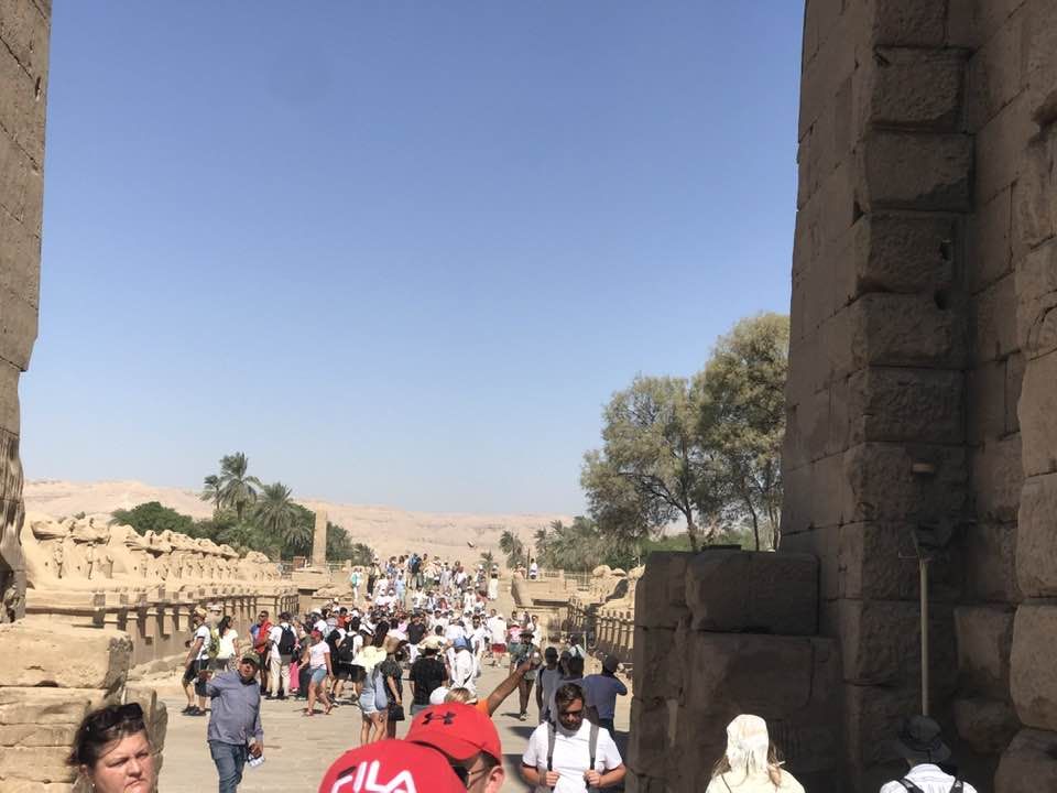 إقبال مميز من سياح العالم بين الكباش فى معابد الكرنك