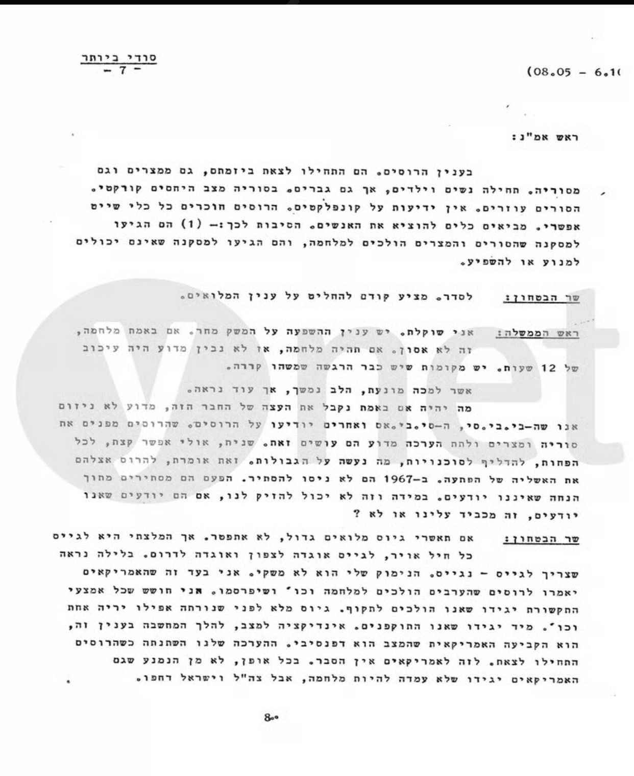 وأكدت الصحيفة الإسرائيلية أن قائمة صغيرة ومتميزة تضم كبار الشخصيات في إسرائيل، والمطلعين على أكثر المواد سرية، لم يكونوا على علم بالمصدر الرفيع الذي ينقل الأخبار للموساد وهو أشرف مروان أحد أبرز المقربين من الرئيس السادات.