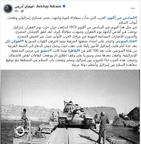 تدوينه افيخاي ادرعي ووهم انتصار إسرائيل في حرب أكتوبر