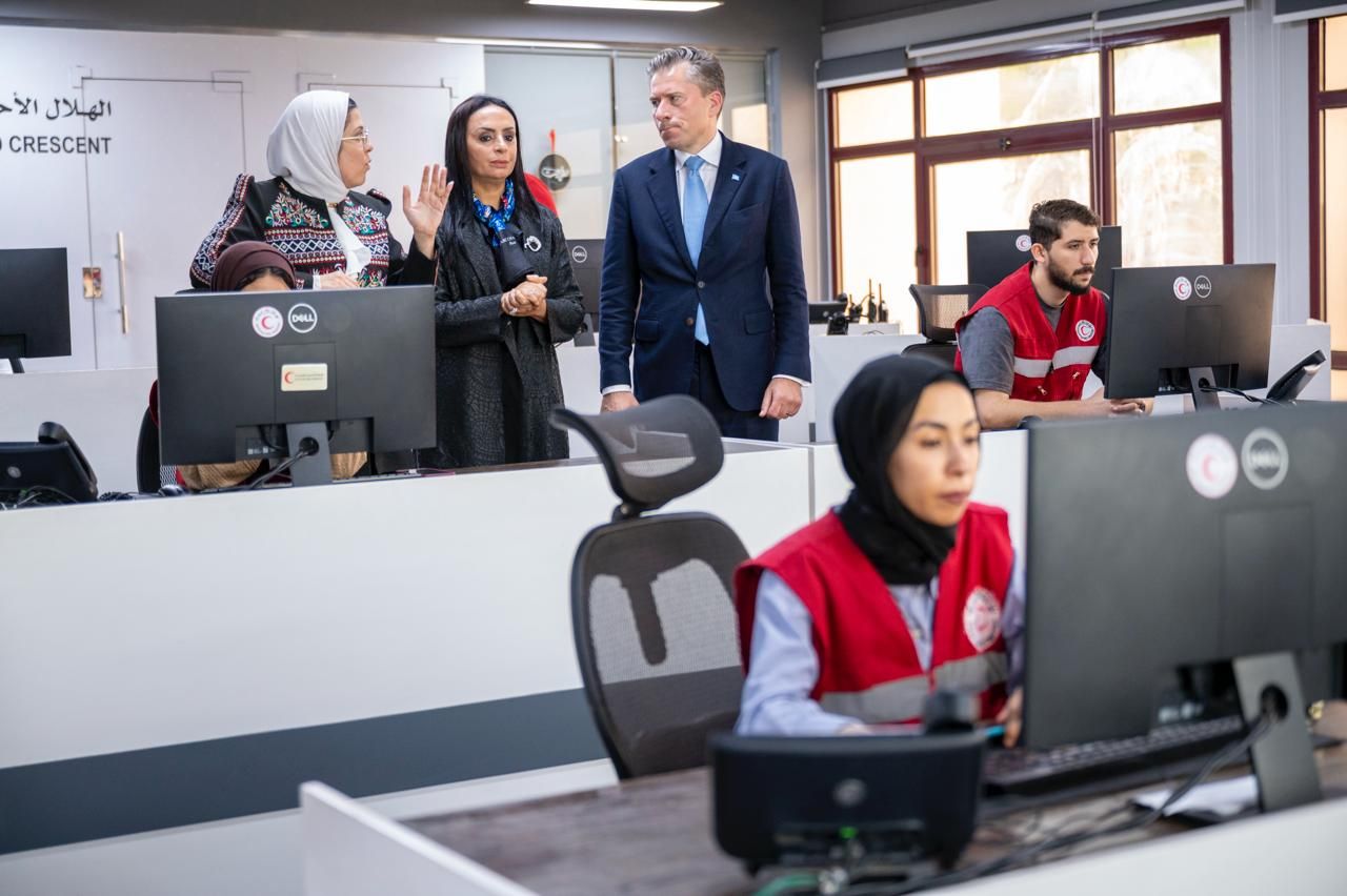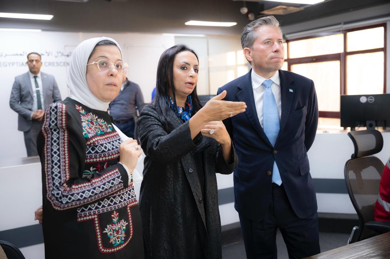 وعقب ذلك اصطحبت وزيرة التضامن الاجتماعي وكيل الأمين العام للشئون الإنسانية ومنسق الإغاثة في حالات الطوارئ في جولة داخل غرفة العمليات المركزية بمقر المركز العام للهلال الأحمر المصري، للإطلاع ومتابعة آلية تنسيق المساعدات على مدار الساعة وعمل المتطوعين داخل الغرفة.