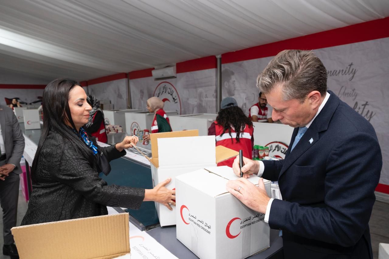 وانتقلت وزيرة التضامن الاجتماعي ووكيل الأمين العام للشئون الإنسانية ومنسق الإغاثة في حالات الطوارئ إلى مركز تعبئة المعونات الإنسانية، حيث شارك المتطوعين في تعبئة عدد من المواد الإغاثية الإنسانية التي ستنتقل إلى العريش تمهيدا لإدخالها للأشقاء الفلسطينيين.