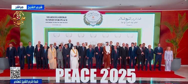 صورة تذكارية لقادة قمة شرم الشيخ للسلام