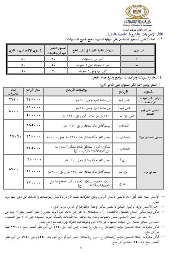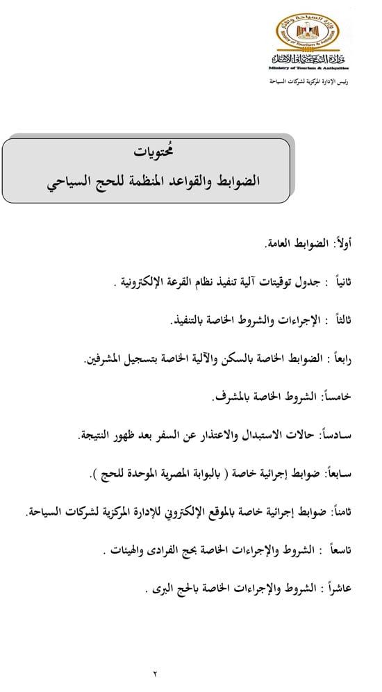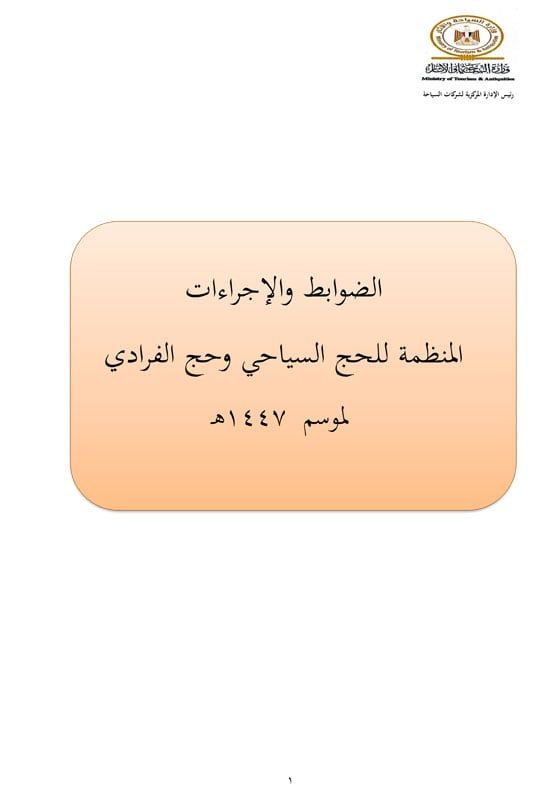 ينشر اليوم السابع ينشر اليوم السابع، النص الكامل للضوابط والقواعد المُنظمة للحج السياحي لعام 1447هـ، وفقاً لأحكام قانون 84 لسنة 2022 المنظم للحج، وقانون شركات السياحة رقم 38 لسنة 1977، وذلك في إطار الحرص على تحقيق التميز المستهدف والنهوض بمنظومة الحج السياحي وتطويره.