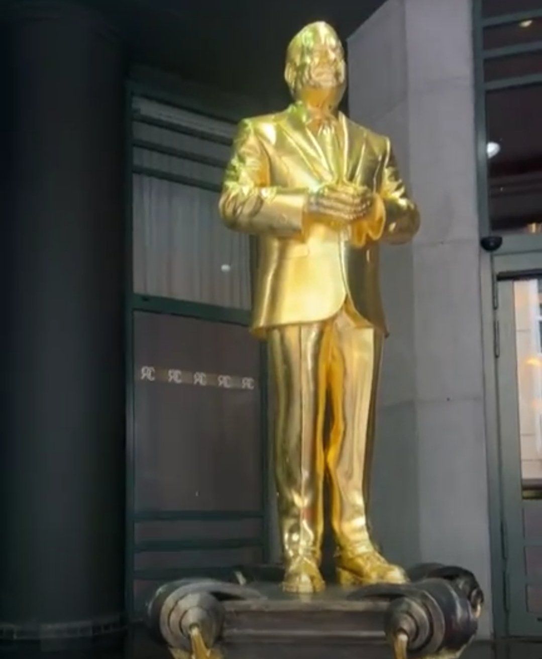 واستعدادا لاستقبال الرئيس السيسى، صمم أبناء الجاليات المصرية مجسما للرئيس السيسى باللون الذهبى، وذلك تعبيرا عن حبهم للرئيس السيسى.